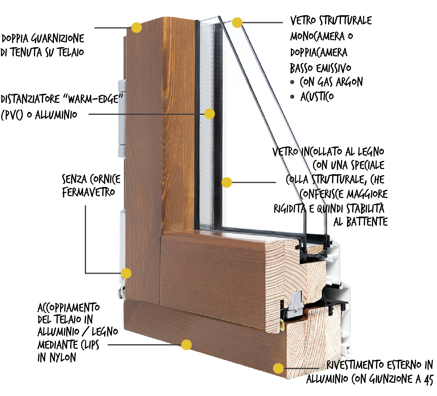 - Vetro incollato strutturalmente senza fermavetro visibile